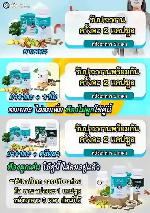 จาตะ + วาโย (ลมเยอะ ไล่ลมเพิ่ม ท้องไม่ผูก ใช้คู่นี้)