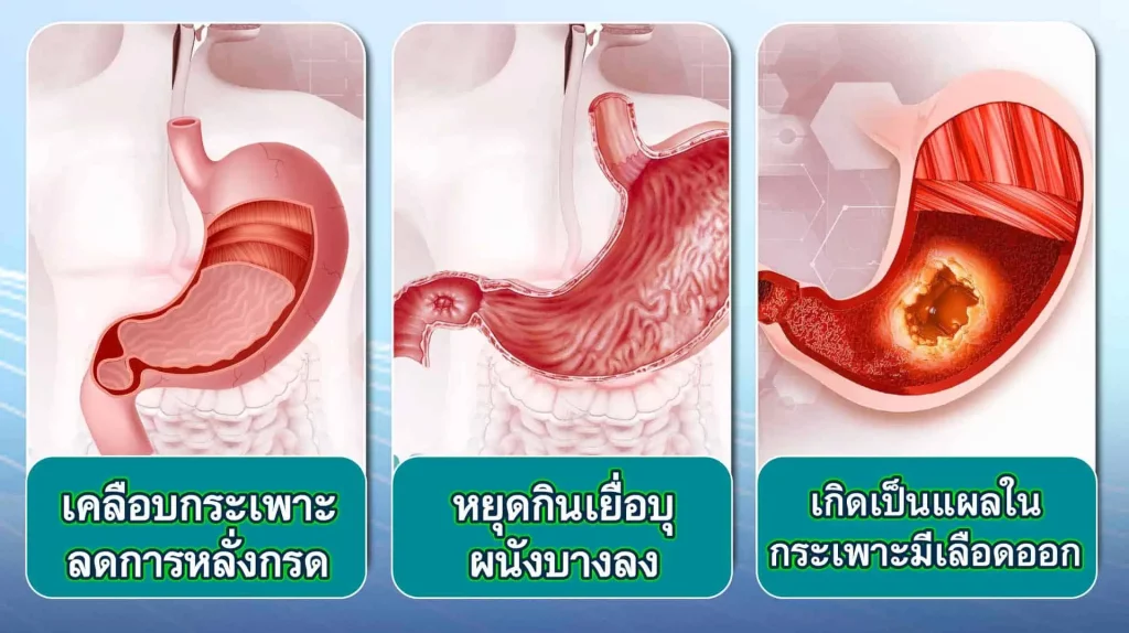 - เสริมภูมิคุ้มกันระบบทางเดินอาหาร ลดการระคายเคือง ซ่อมแซมเยื่อบุผนังกระเพาะ